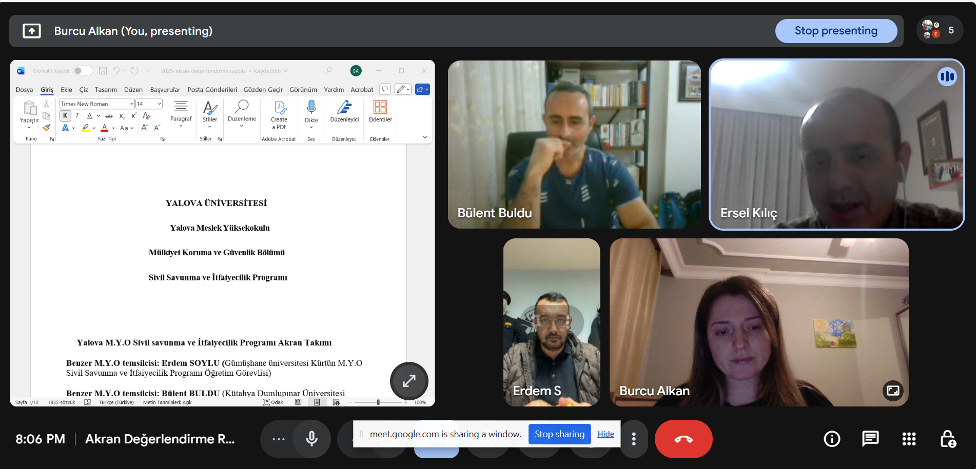 Yalova Üniversitesi Yalova Meslek Yüksekokulu Mülkiyet Koruma ve Güvenlik Bölümü / Sivil Savunma ve İtfaiyecilik Programı benzer programlarla yürütülen akran değerlendirme çalışmaları doğrultusunda bir toplantı gerçekleştirilmiştir.